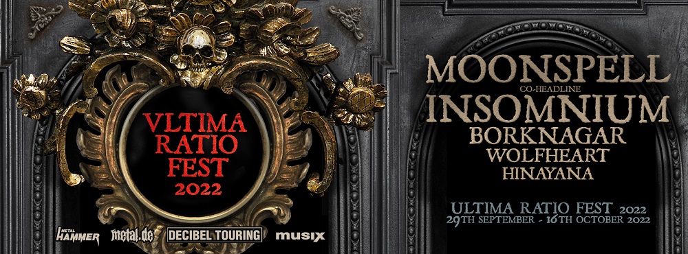 In support of their upcoming release and to celebrate the band’s 30th anniversary in glorious style, MOONSPELL will embark on an extensive European tour with INSOMNIUM, WOLFHEART, BORGNAGAR and HINAYANA, kicking off this week in Frankfurt, Germany! Make sure to catch one of THE live highlights of the Fall 2022, and don’t miss the “Ultima Ratio Fest” at the following dates: