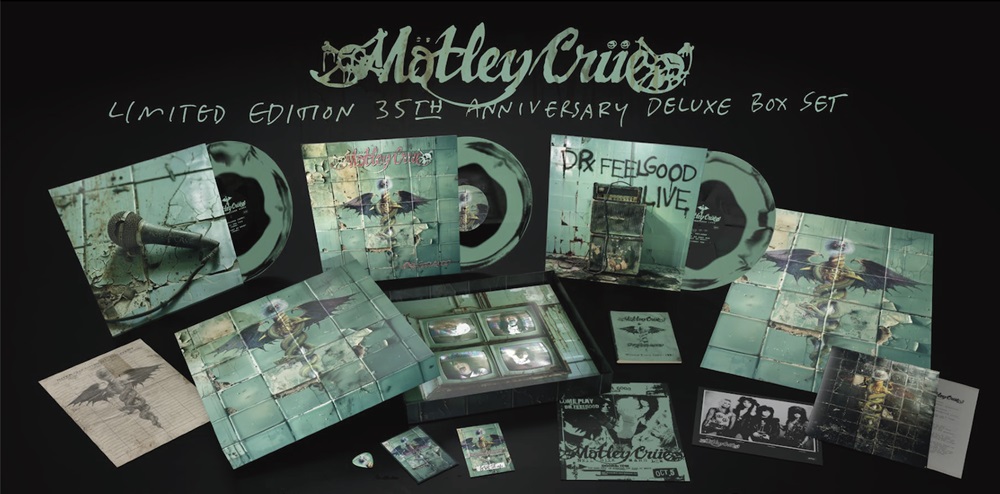 The centerpiece of this 35th anniversary campaign will be a limited edition box set available on LP & CD with the remastered version of the original album, as well as rare demos and live tracks. The box set also features a 24 page replica tour book with never before seen and never before published live and behind the scenes photos, a replica Dr. Feelgood tour itinerary, poster, patch, backstage pass, live show handbill, press kit, medical envelope and guitar pick.