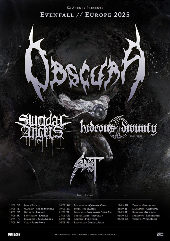 The upcoming European run will feature a powerhouse lineup of metal acts, including Greece’s premier thrashers and label mates Suicidal Angels, brutal death metal titans Hideous Divinity from Italy, and the legendary progressive death metal outfit Sadist, also hailing from Italy.