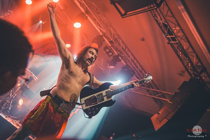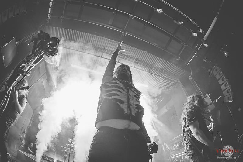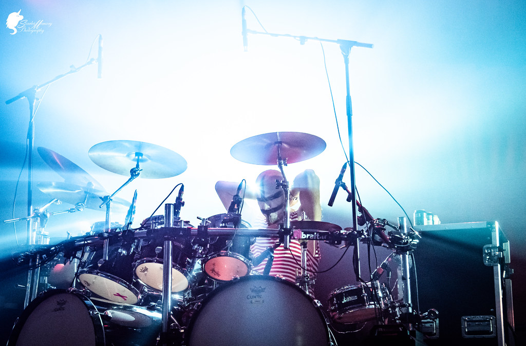 Skål, a largely instrumental party folk metal band from Wallonia, got to kick off the night. “Instrumental party folk”, you say? How does that work? By adding fun gimmicks and simple catchphrases for the crowd to shout along. The music is rather eclectic in style despite the name, keeping things fresh throughout. They’ve been around for several years already, and it shows in a very solid sound.