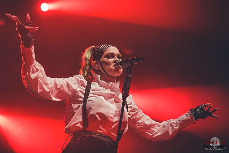 Some musical projects are simply unique, sometimes with their music, other times with their lyrics and themes, other times with their aesthetics. I think it’s easy to say that SKYND is rather unique on all of these levels. The way they combine industrial music with poppy qualities to sing about serial murders, murder mysteries and horrendous things that happened in the past including some very distinct looks and imagery is something we haven’t seen done before like this. SKYND isn’t just music. It’s an experience. It’s a happening. It’s something that’ll easily speak to people from all walks of life if they’re any bit intrigued by the dark side of life and murder mysteries. We’ve been following what they’re doing since they suddenly popped up with their very first single and haven’t been disappointed with anything they’ve done. So when we saw they were going to drop by a couple of places close to us on their European tour, we just had to be there.