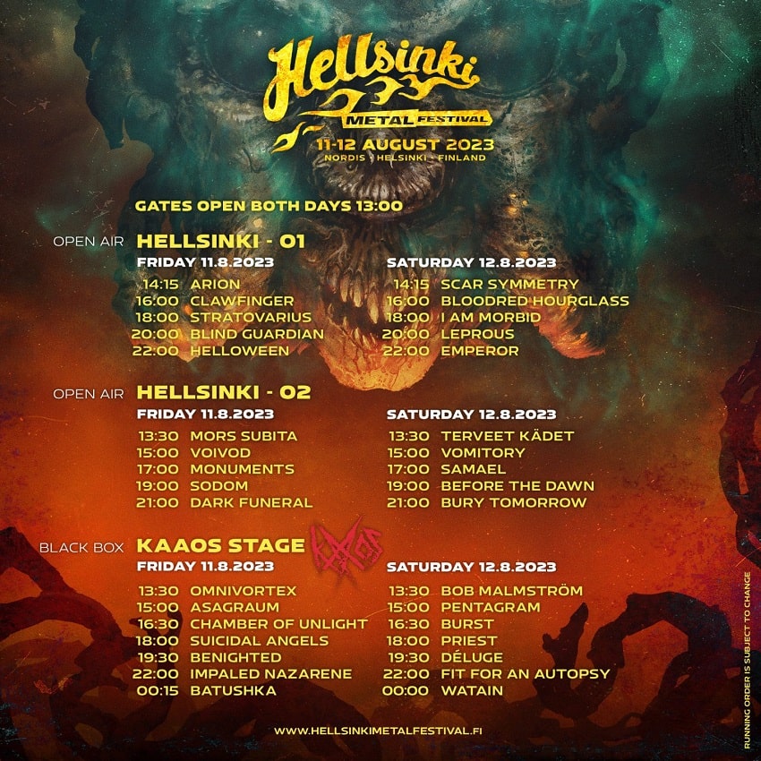 Hellsinki Metal Festival takes place the second weekend of August, from Friday August 11 – 12.