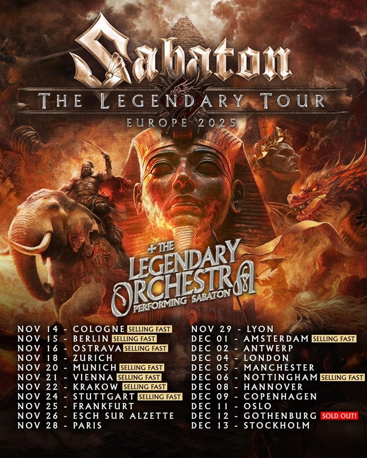 SABATON—Joakim Brodén (vocals), Pär Sundström (bass), Chris Rörland (guitar), Thobbe Englund (guitar), Hannes, Van Dahl (drums)—have always had a signature focus on writing songs about historical battles, wars, and acts of heroism that have solidified their impact with their loyal and longtime fans. SABATON have accumulated more than three billion streams across all streaming platforms and almost two billion views on YouTube.