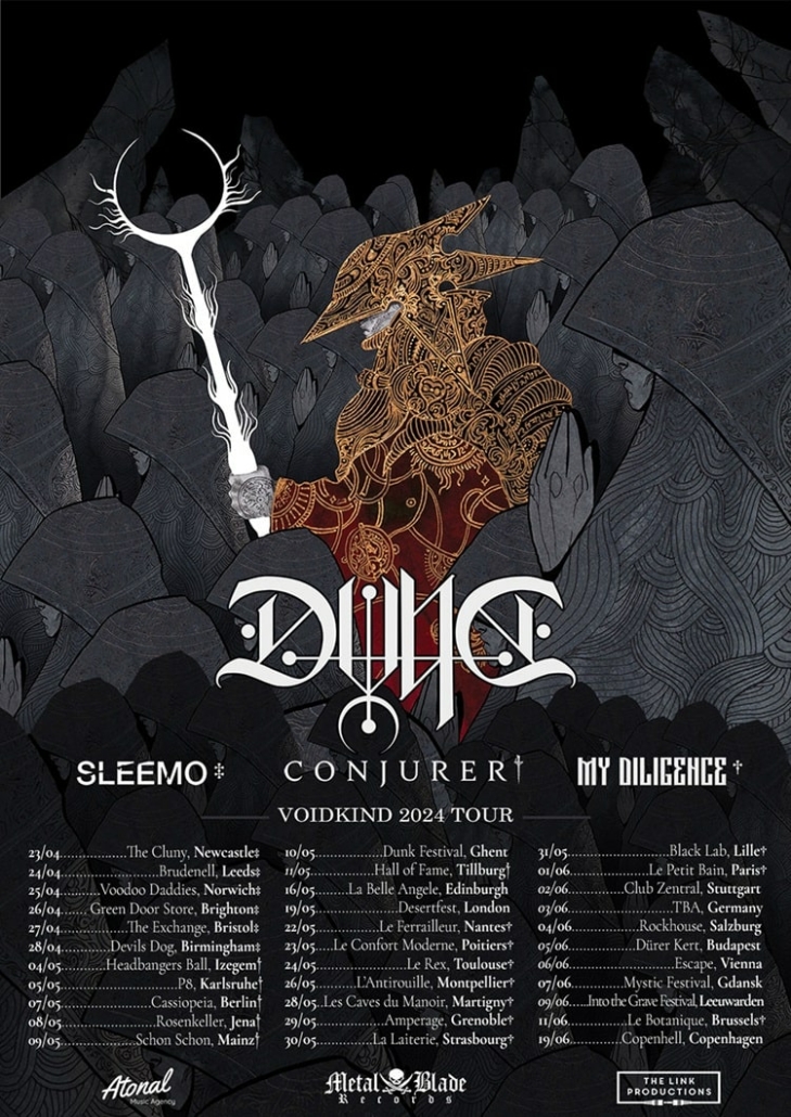 Following the release of Voidkind, DVNE will embark on a European Spring tour which includes shows with Sleemo, Conjurer, and My Diligence on select dates. See all confirmed dates below.