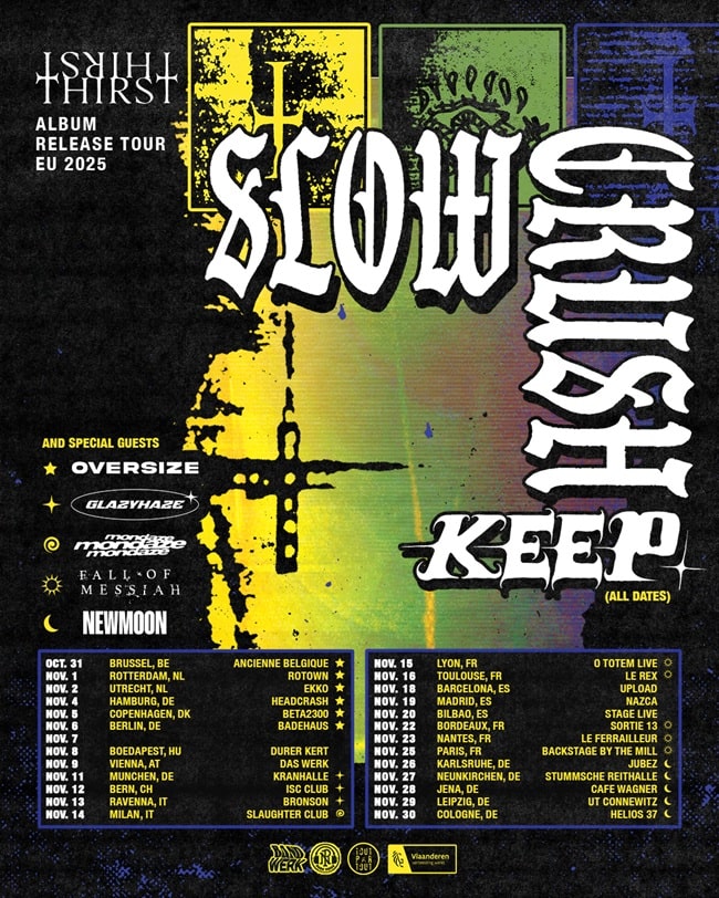 Joining Slow Crush across all dates as direct support are Keep, with additional support from Oversize, Newmoon, Glazyhaze, Mondaze, and Fall of Messiah on select shows — bringing a dynamic lineup that promises nights of immersive and emotionally-charged live performances.