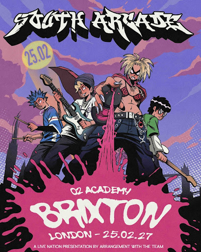 “SUPERMAN” propels South Arcade into a huge year after the release of their 2025 EP PLAY!, which featured standout singles “FEAR OF HEIGHTS“ and Radio 1 favorite “Supermodels,” alongside “Drive Myself Home.” Building on the momentum, the band has continued to rise at pace, landing major festival slots including the main stage at Download Festival alongside headliners Guns N’ Roses and Linkin Park, as well as a performance at TRNSMT Festival. They will also head back to the U.S., for the incredible run of idobi Summer School 2026 shows as well as heading back later in the year for the iconic Vans Warped Tour, making their mark on both sides of the pond. With over 105 million streams on Spotify from their last two EPs, 2005 and PLAY!, the band have established themselves as a major presence in the alternative rock scene, amassing over 22 million likes on TikTok, a rapidly expanding YouTube following, and a growing demand for their energetic and commanding live performances.