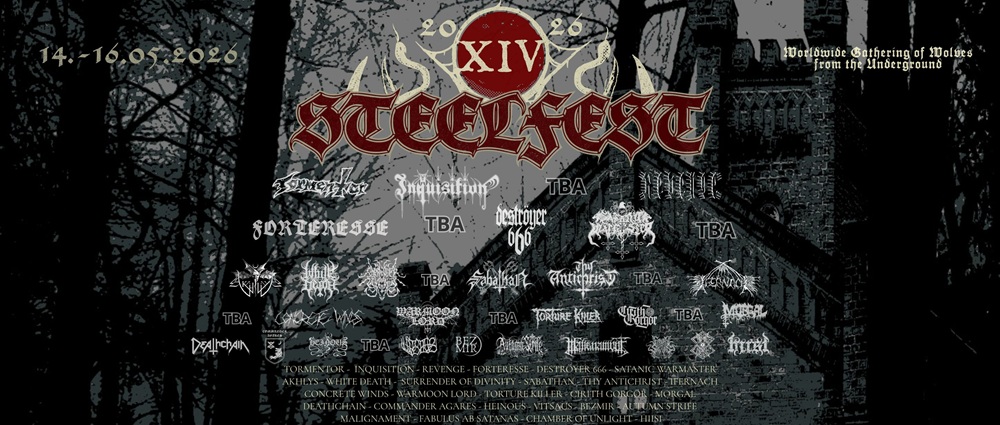 True to its reputation for unrelenting underground extremity, Steelfest Open Air has unveiled the first batch of bands for its 2026 edition and once again, the Finnish festival promises a descent into the deepest, darkest depths of extreme metal May 14th – 16th, 2026. Among the first confirmed acts are cult heavyweights like Revenge, Forteresse, Tormentor, Satanic Warmaster, Deströyer 666, and Inquisition, alongside atmospheric and raw forces such as Akhlys, Ifernach, Warmoon Lord, and White Death.