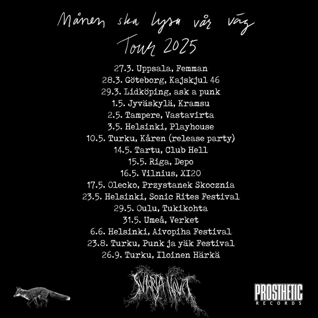 Månen ska lysa din väg, translated in English as “The moon will light your way” and a direct quote from album track Göm dig, was recorded in January 2024 at Waiting Room Studio in Tampere, Finland, with producer Mikael Neves. SVARTA HAVET sought to capture the spirit and essence of their written material, approaching the recording sessions in as close a way to their live shows as possible, with minimal overdubs and studio trickery in favour of organically captured intensity during each instrument’s recorded take.