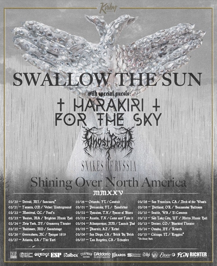 SWALLOW THE SUN recently announced headline dates across the North America and Finland. Taking place in the winter and kicking off December 5th in Lahti, Finland the tour will hit all major cities across the country, wrapping up on December 14th in Helsinki. February 20th will kick off their run of shows taking place in the US and Canada. Tickets are on sale now.