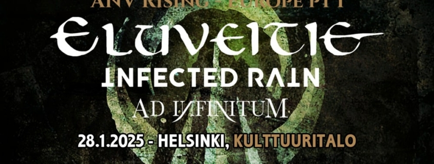 Eluveitie, Infected Rain and Ad Infinitum came to Tampere’s Tavara-Asema as part of their ‘Ánv Rising Tour pt I’ at the end of January, bringing their great music to one of Finland’s most beautiful cities. An event by TuskaLive.