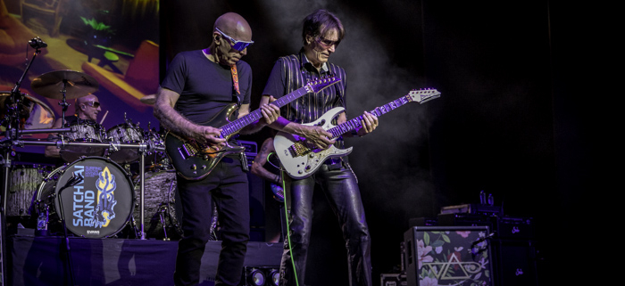 For the first time ever, legendary guitar icons Joe Satriani and Steve Vai have united and are on tour with the SATCHVAI band! With the support of Ned Evett, they turned Antwerp’s Stadsschouwburg into a temple of rock where we could worship some of the genre’s gods!