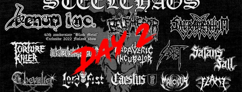 Steelchaos day two was clearly the main day for many people as it clearly drew the biggest crowd with a fantastic lineup from old school heavy metal from Chevalier and Lord Fist to skull crushing death metal from Cadaveric Incubator and Torture Killer and to good ol’ Finnish black metal from Horna. And of course the much anticipated anniversary show by Venom Inc. celebrating the 40th anniversary of the classic ‘Black Metal’ album!