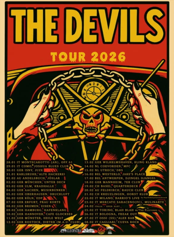 Having carved out a reputation for explosive shows and a ferocious rock sound, THE DEVILS have announced their European Tour 2026. The Italian rock duo will kick off the tour on January 28 in Montecarotto, Italy, before taking their primal, high-energy live performances across Germany, Austria, the Netherlands, Belgium, Switzerland, and Italy. Tickets are on sale now.