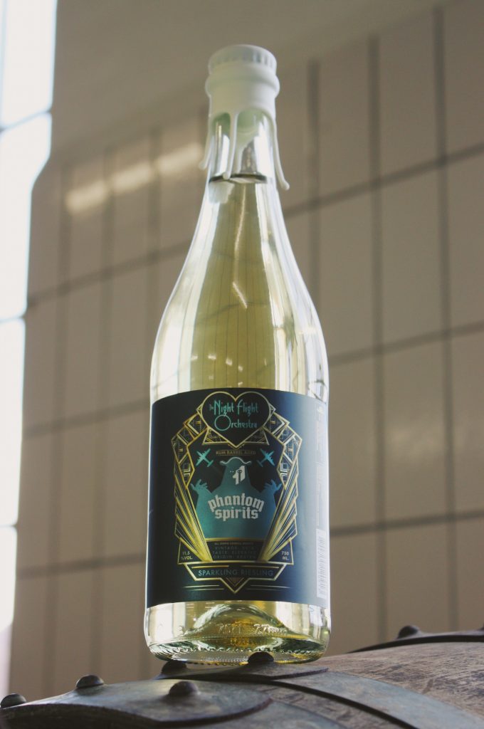 The Rum Barrel Aged Sparkling Aeromantic Riesling is a pét-nat on Riesling grapes concocted in collaboration with Mikkeller, Weingut Meierer, Phantom Spirits, and The Night Flight Orchestra.