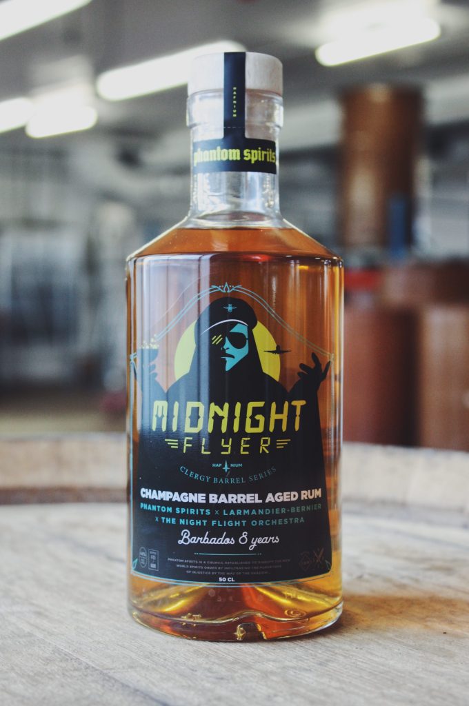 Midnight Flyer is the world’s first champagne barrel-aged rum. A groundbreaking collaboration conjured up by Phantom Spirits, Larmandier-Bernier, and The Night Flight Orchestra.