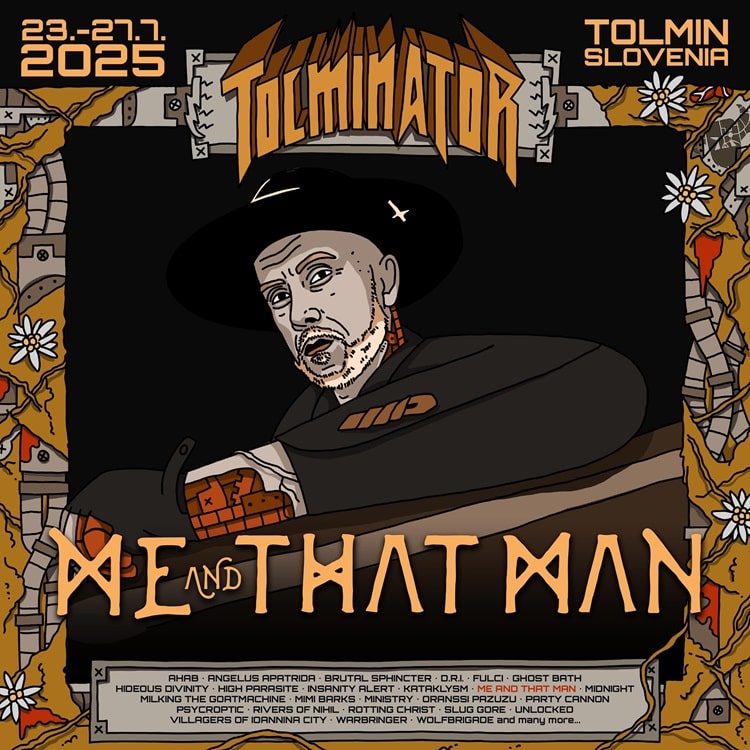 Who’s ready for a dark folk satanic blues americana project ME AND THAT MAN!? I signed a pact with the devil himself for this one, and it’s a pleasure to have my friend Nergal back at the crime scene in Tolmin 666! Alongside psych stoners influenced by the unique sounds from the region of Epirus, please welcome THE VILLAGERS OF IOANNINA CITY. Shout out to the ultimate black’n’roll speed maniacs MIDNIGHT, Tasmanian tech death devils PSYCROPTIC and death pop darkness HIGH PARASITE ft. Aaron Stainthorpe (My Dying Bride). Jump in the pit with the goregrind party machine BRUTAL SPHINCTER, headbang until you break your neck on death grinders SLUG GORE, and get nuts with the trap metal queen MIMI BARKS, the hottest act out there! My crew and I are turbo thrilled to add all of these sick artists to the lineup for Tolminator III
