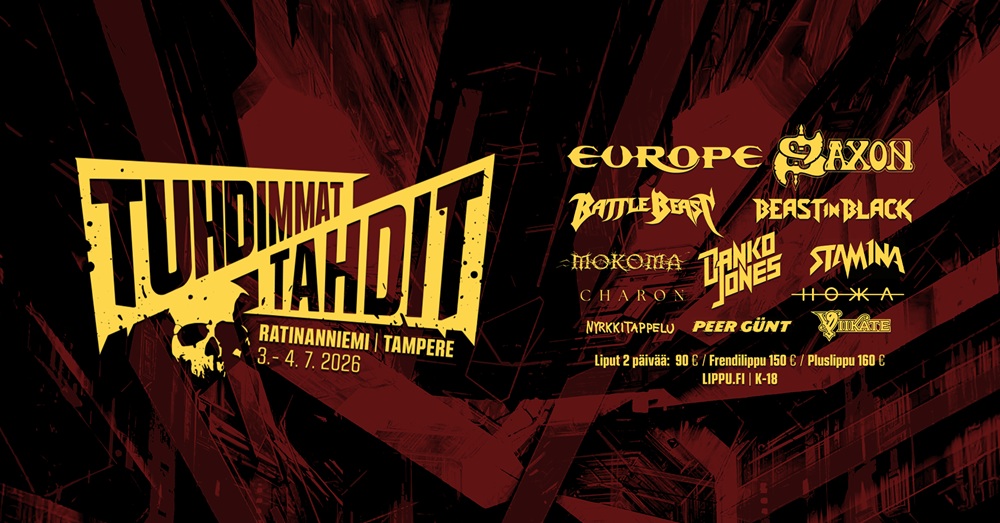 Last week’s announcements already strengthened the program considerably. As pioneers of the New Wave of British Heavy Metal, Saxon will bring classic heavy metal power and timeless anthems to Ratinanniemi. Beast In Black, currently touring arenas as part of Helloween’s 40th anniversary tour, combine modern metal with infectious melodies and stadium-sized choruses. Internationally successful Battle Beast will also appear at Tuhdimmat Tahdit, fronted by their new singer Marina La Torraca.