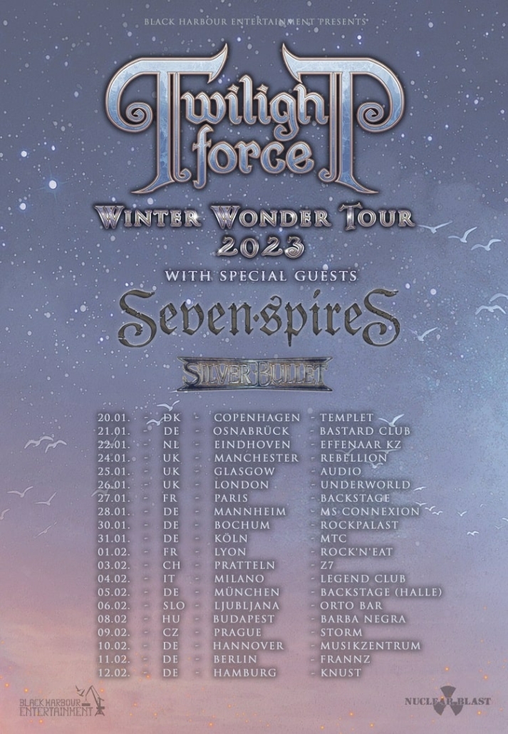 The 20th of January 2023 is not only a special day due to the album release, but also because of the start of TWILIGHT FORCE‘s Winter Wonder Tour, which will bring the Swedes to 19 different cities in Europe! After the tour had to be postponed before, in January 2023 TWILIGHT FORCE will kick off their long awaited tour in Copenhagen, Denmark.