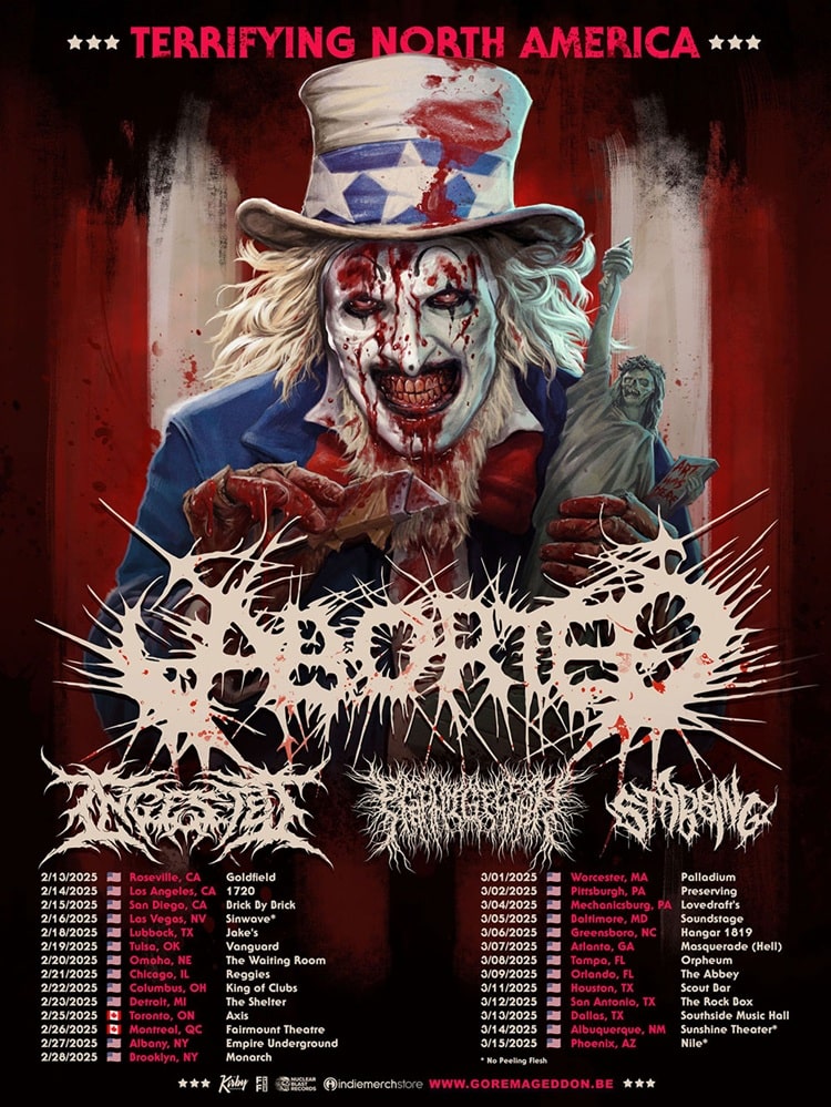 INGESTED will return to North American stages this week with Aborted. The month-long Terrifying North America tour begins February 13th in Roseville, California and runs through March 15th in Phoenix, Arizona. Additional support will be provided by Peeling Flesh and Stabbing. In May, the band will support Born Of Osiris on a month-long European run from May 8th in Brno, Czech Republic through June 9th in Aarau, Switzerland. Additional support will be provided by The Voynich Code and labelmates, Entheos.