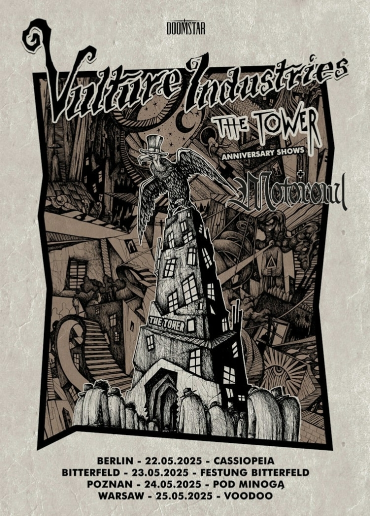 In celebration, Vulture Industries have announced a small run of ‘The Tower’ anniversary shows, which will happen this Spring. A full list of confirmed shows can be found below.